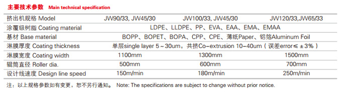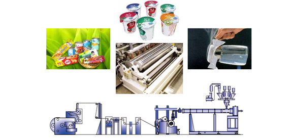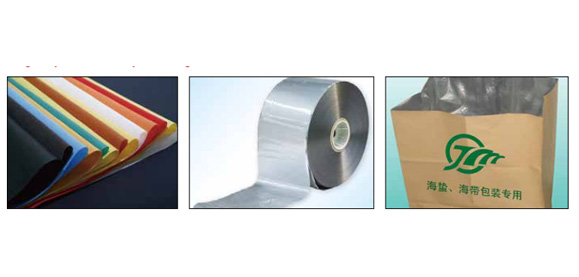 糖果、食品高阻隔包裝材料擠出復合生產線;醫藥高阻隔包裝材料擠出復合生產線;方便面淋膜復合 生產線;紙杯紙、紙餐盒淋膜機以及單面淋膜、雙面淋膜、單層擠出、雙層共擠、三層共擠生產線等高品質設備。用途:該設備主要用于包裝、紙塑復合膜類,淋膜復合機組是用擠出流延法對高壓聚乙烯、OPP膜、紙杯紙、紙盒紙、商標 紙、瓜子袋紙、清潔袋紙、鋁箔、膜類、布類等基材進行單層 淋膜、雙層淋膜的設備。