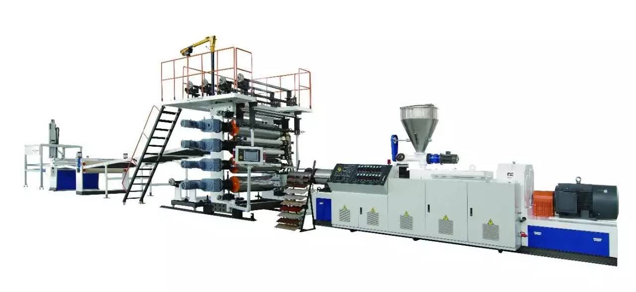 耐磨層、印刷層、高鈣pvc基材擠出、防滑層