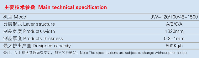 金緯機(jī)械研制開(kāi)發(fā)的PP+石粉環(huán)保片材生產(chǎn)線(xiàn),采用三臺(tái)擠出機(jī)三層或四層共擠法,選用金緯最新設(shè)計(jì)的PP+石粉專(zhuān)用排氣式螺桿結(jié)構(gòu),PLC電腦控制和自動(dòng)測(cè)厚儀跟蹤檢測(cè),從而在最大限度利用石粉比例,降低片材原料成本的基礎(chǔ)上,又確保片材的綜合物理性能和后續(xù)可加工性能,使生產(chǎn)線(xiàn)產(chǎn)能指數(shù)達(dá)到最佳狀態(tài),是目前國(guó)內(nèi)最先進(jìn)的片材機(jī)組之一。