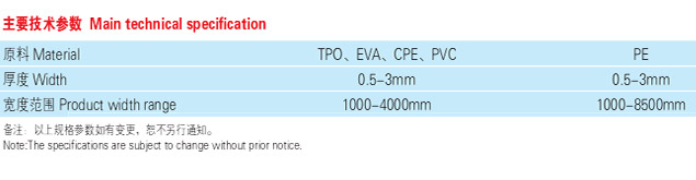 產(chǎn)品適用:工業(yè)與民用建筑的屋面防水,包括種植屋面、平屋面、坡屋面、建筑物地下防水:包括水庫、堤壩、水池防水、隧 道、糧庫、人防工程、垃圾掩埋場、人工湖防水等。