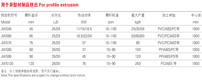 該機型主要用于異型材、片板材、管材產品的擠出,螺桿機筒的結構形式多樣,加工精度高,塑化好,產量高,適合不同用戶需求,電氣控制元件配置高檔,可靠性好。適合加工PVC\PC\ABS等各種異型材產品。