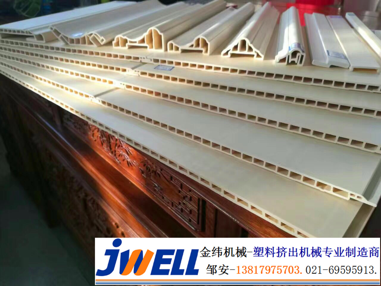 拆裝方便, 省時省力花色樣式種類繁多, 可以替代墻漆, 墻紙等傳統裝潢材料環保, 隔熱, 防潮, 防霉, 保溫, 防火, 隔音, 時尚, 美觀, 方便清潔金緯機械作為國內領先的塑料擠出設備生產商, 順應時代發展潮流, 現隆重向市場推出PVC快裝墻板/軟晶墻板/竹木纖維集成墻板生產線