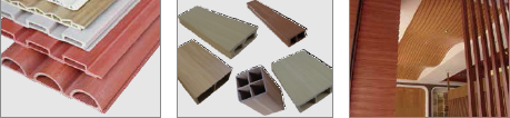 該生產線主要用于生產長城板、外墻板、隔斷墻、天花扣板、吸音板、樓梯扶手、百葉窗、地腳線等裝飾型生態木產品,擠出機 部件采用獨特的螺桿設計,避免原材料的高剪切和過塑化,生產出的產品表面木紋紋理獨特明顯,產品不變形、不褪色、防火、 防腐、防蟲蛀,耐老化和抗紫外線。