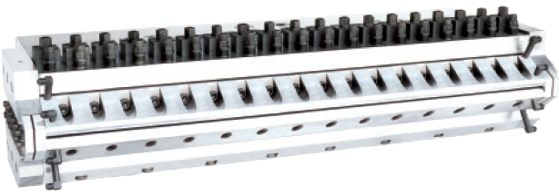 一、拆卸模唇油管并固定在模具架上〈要求油管口高于模溫機油箱內油面〉用專用堵頭擰在模唇出油口以防出油。